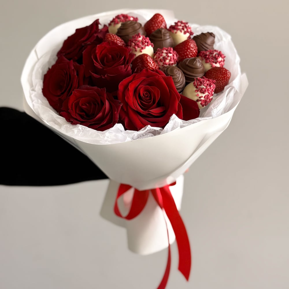 — Композиции собираются по весу, а не по количеству: ягоды могут отличаться по размеру и сорту, поэтому точное количество может варьироваться — В букете 300 г клубники, примерно 10-12 ягодка — Примерный размер: 30 см в диаметре, 40 см в высоту — каждый букет уникален, ведь он создаётся вручную — Внутри — брошюра с информацией о сроке годности, хранении и транспортировке — Дизайнерская упаковка с атласной лентой 🎀 — Клубника бережно упакована в прозрачную плёнку — для защиты от внешних факторов и от контакта с цветами — Цветы установлены на акваножке — специальной упаковке с водой для поддержания свежести — В каждый букет добавляется инструкция по уходу за цветами и кризал — подкормка для срезанных растений ✨ Натуральный продукт. Срок годности — до 24 часов. Хранить в холодильнике при температуре +4…+8°C ❄️
