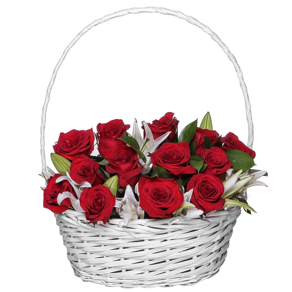 Розы и лилии в корзине