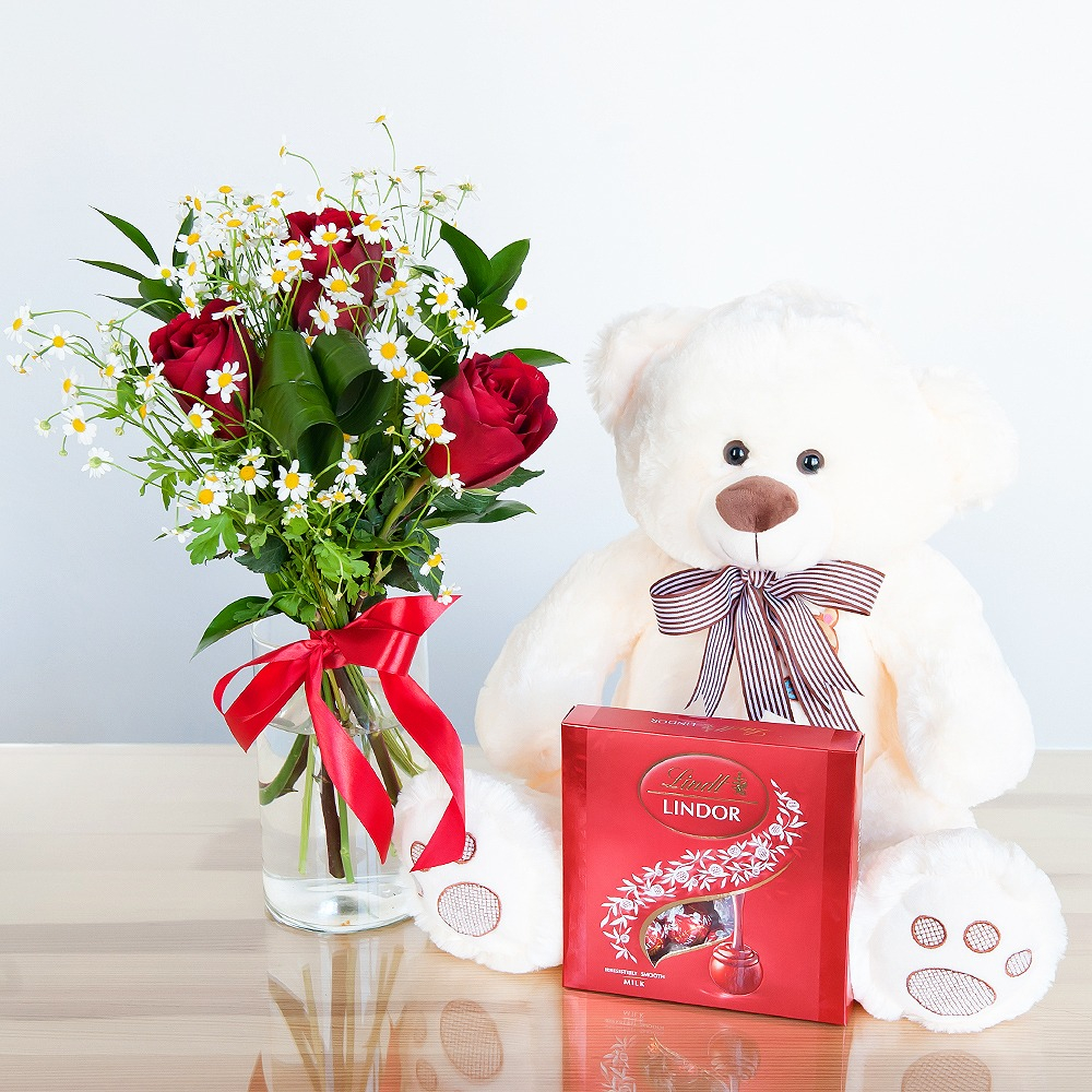 Милый мишка и коробка вкусных конфет обязательно растопят ее сердце, а чудесный букет алых роз передаст ваши самые искренние чувства.