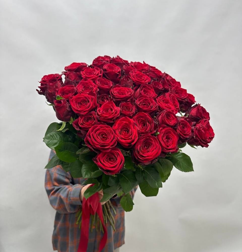 Букет из крупных красных роз, 51 Роза под ленту ❤️ По вашим пожеланиям можем завернуть в упаковку😍