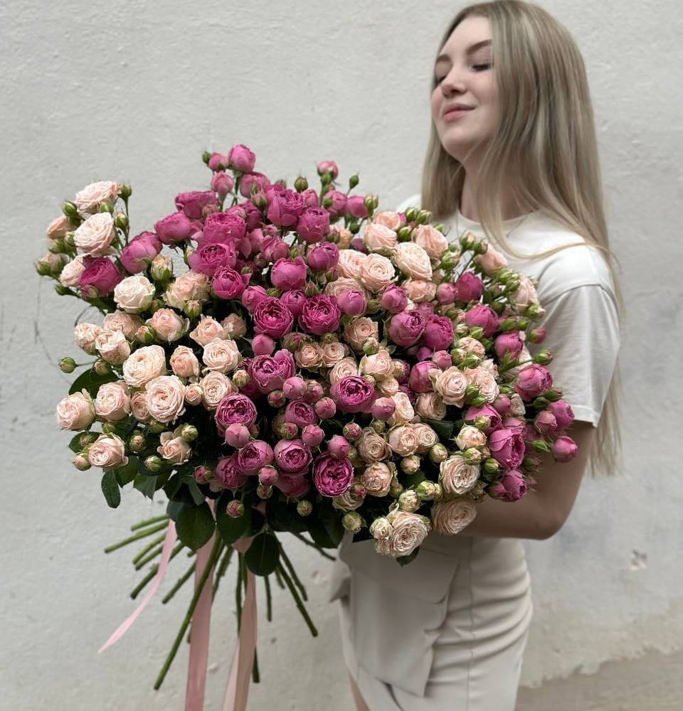 Пышный букет из двух сортов кустовых роз нежного и яркого цвета 🥰 Здесь 35 веточек💕 От нас – Бережная транспортировка букета, инструкция по уходу за розами, открытка с вашими пожеланиями 🥰❤️