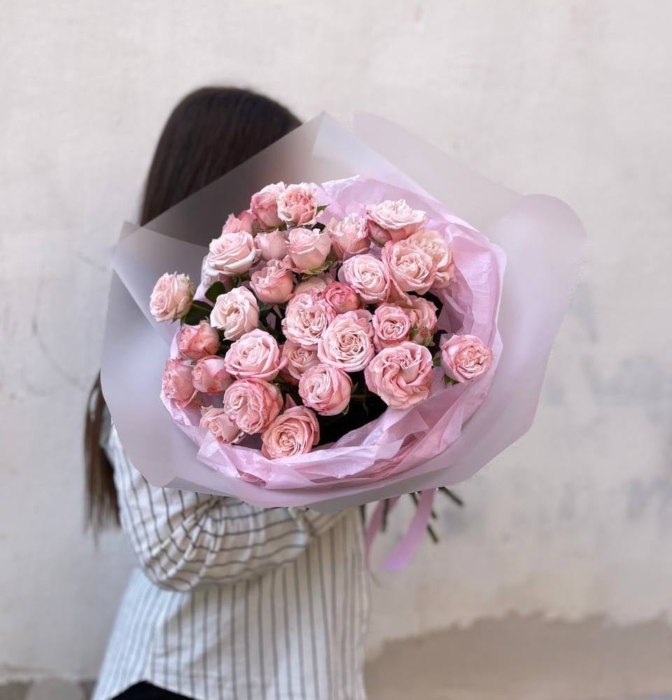 Нежный букетик из пионовидных кустовых роз сорта бомбастик🌸😍