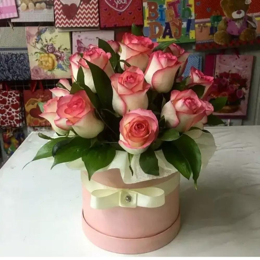 Шляпная коробка с цветами «Розы в коробке»