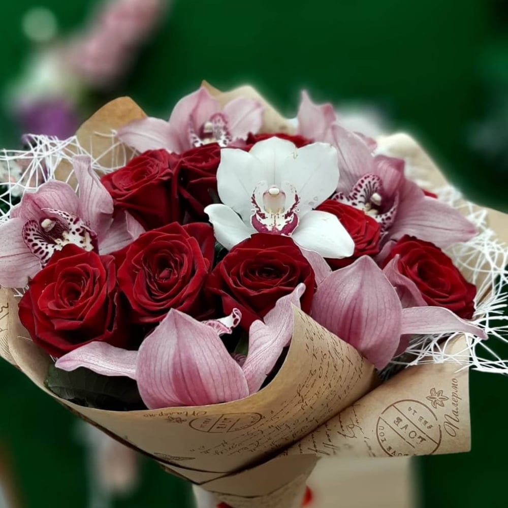Букет «Розы в орхидеях»