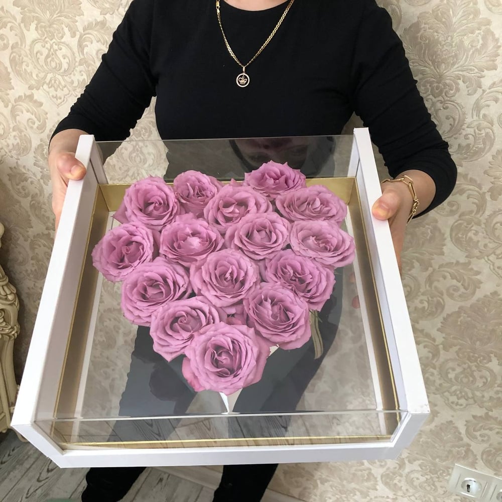 Композиция в форме сердца «Розы в прозрачном Ларце»