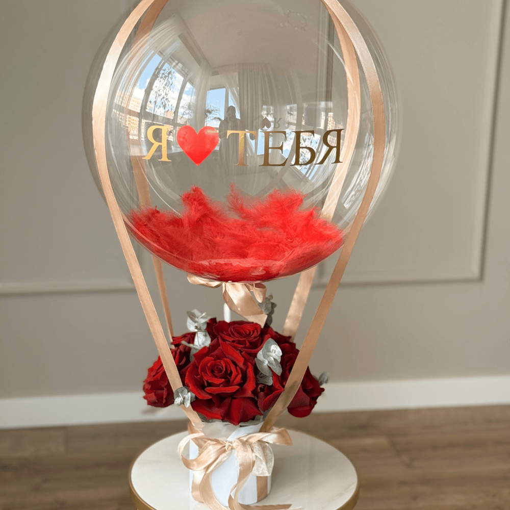— 7 красных французских роз Эквадор (у розы механически вывернуты лепестки, что придает особый шарм цветку) — Эвкалипт — Воздушный шар с перьями и надписью — Белый шляпный бокс Вы можете заказать индивидуальную надпись на воздушном шаре, что сделает ваш подарок оригинальным! —Каждый цветок уникален, поэтому повторить букет 1в1 невозможно. Мы соблюдаем соответствие общего количества цветов, цветовой гаммы и объема букета. — Цветы установлены во флористическую губку с водой, чтобы сохранить свежесть — Добавим к букету инструкцию по уходу за цветами и кризал ( подкормка для срезанных цветов) — Шар диаметра 48 см , высота бокса примерно 90 см— каждый бокс уникален, ведь он создан вручную — Размер шляпной коробочки 18*18 — Бокс бережно упакован в прозрачную пленку для защиты от внешних факторов.