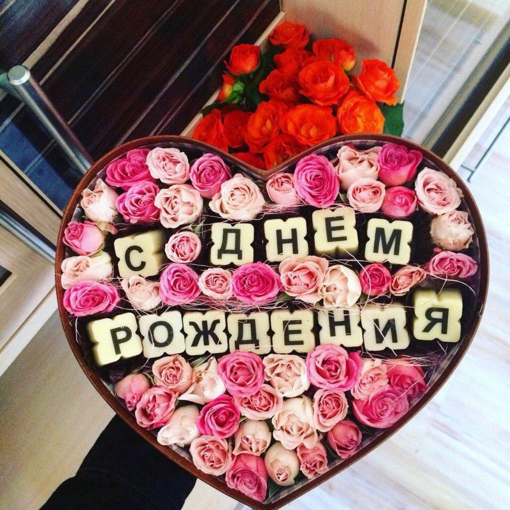 Кустовые розы и шоколад в коробочке в форме сердца - идеальный подарок на день рождения! К любому заказу, за отдельную плату, можно добавить светящуюся светодиодную ленту и включить ее перед тем, как…