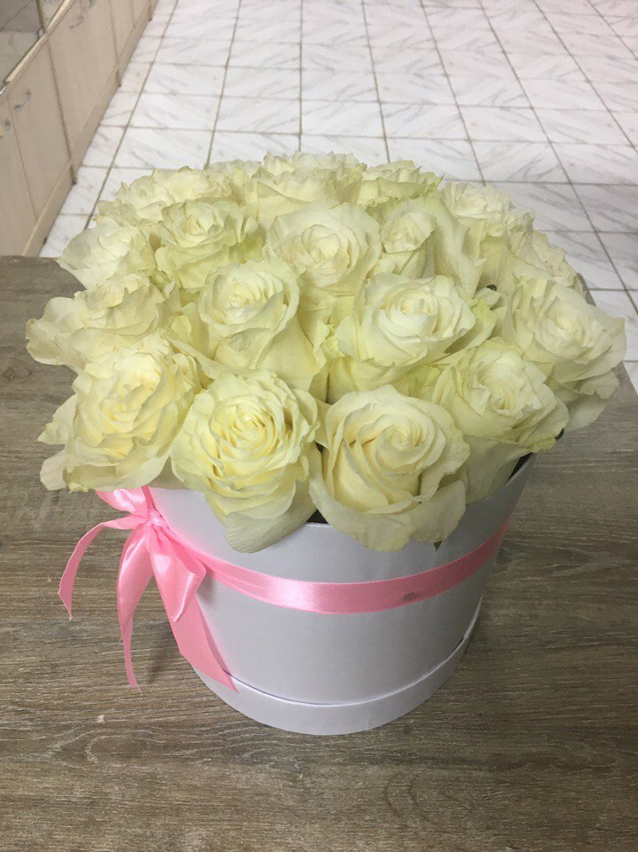 Белые розы в шляпной коробке