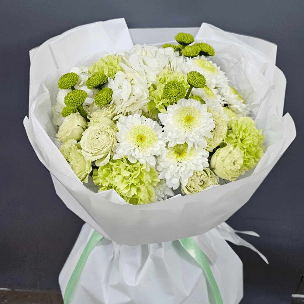Букет «Салатовый микс» из хризантем и роз