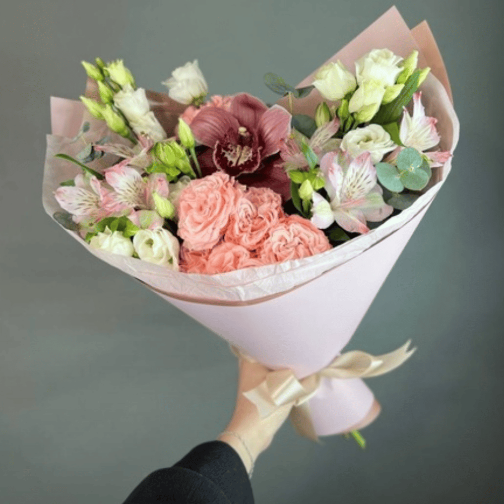 Нежный букет из орхидеи эустомы Альстромерии Для любого повода