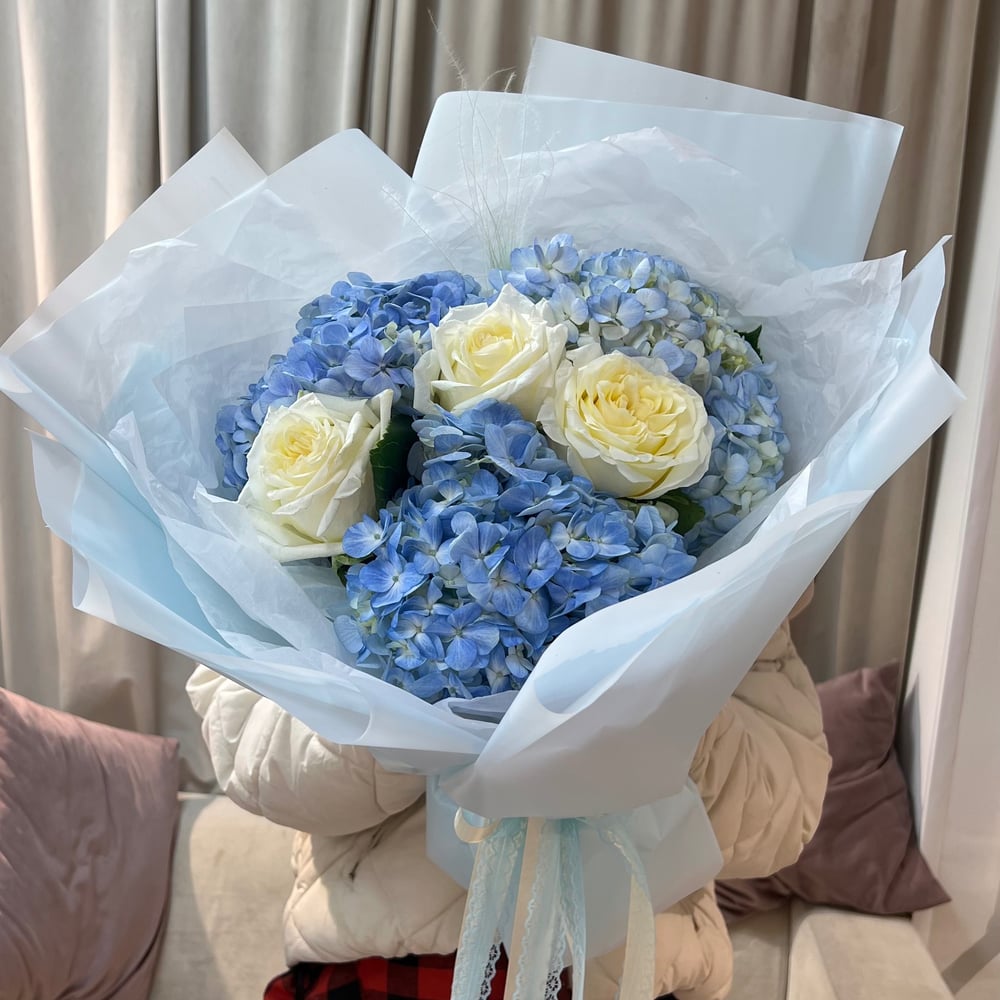 Букет «Самой нежной» из роз и гортензий