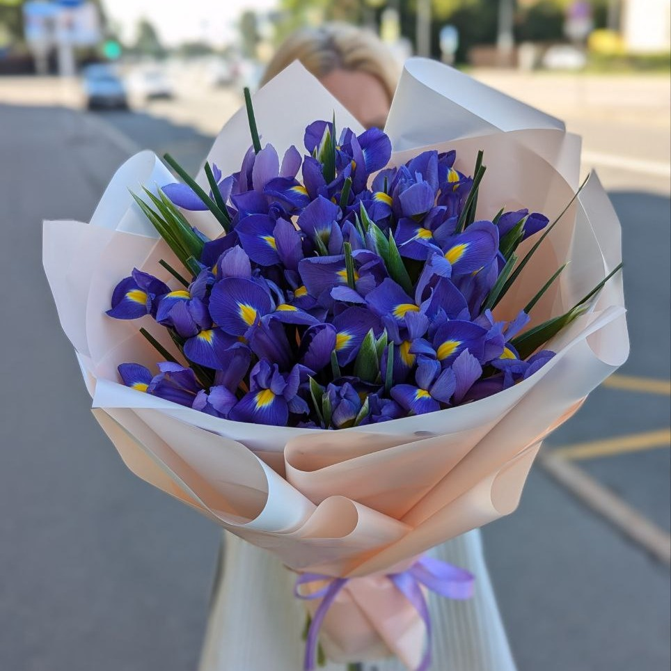 Букет из 25 ирисов в стильной упаковке