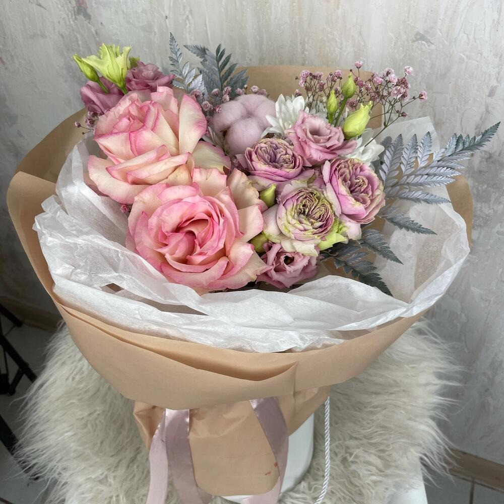 Композиция «Сборный букет» из роз и эустом