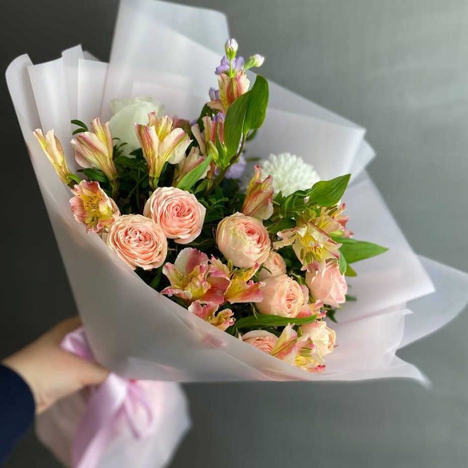Сборный букет из роз и альстромерий