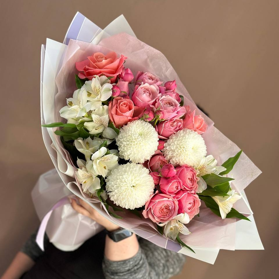 Сборный букет "Помпони" из роз и хризантем
