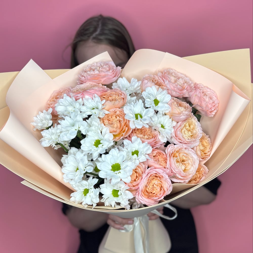 Сборный букет в персиковых оттенках - это идеальный подарок для любого случая. Этот букет состоит из самых красивых цветов, которые будут радовать глаз и душу вашего близкого человека долгое время....