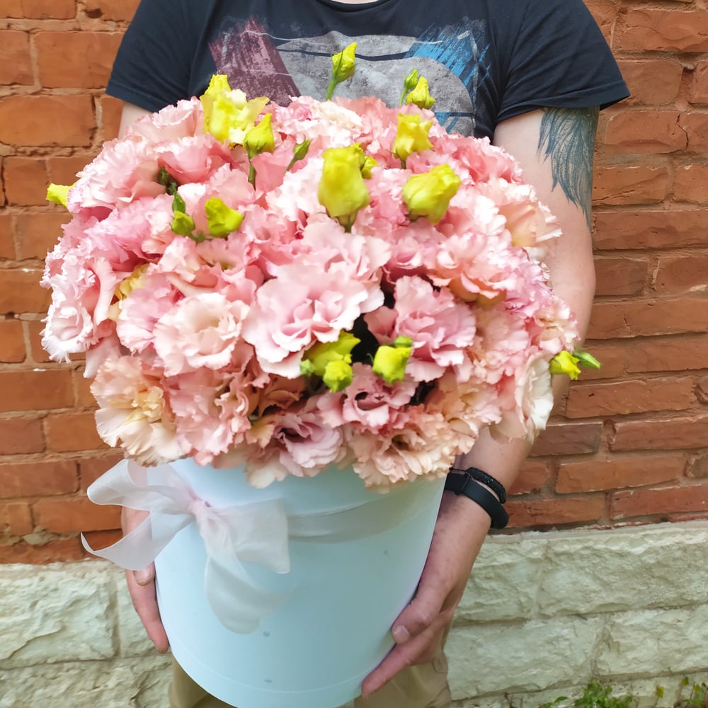 Шляпная коробка с цветами «Счастье» из эустом