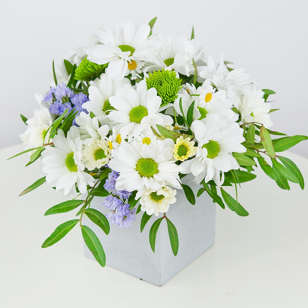 Композиция «Счастье быть» из хризантем и ромашек