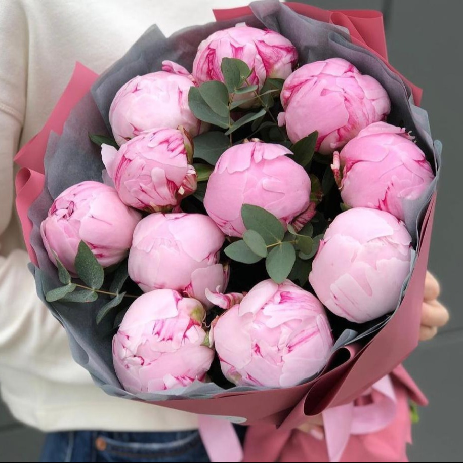 Букет «Счастливые часы» из пионов