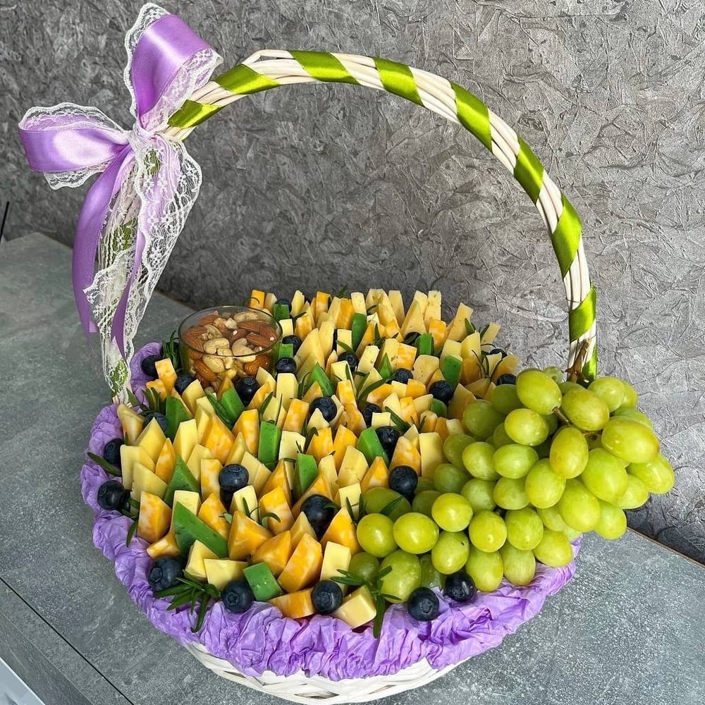Съедобная корзина сыр и виноград