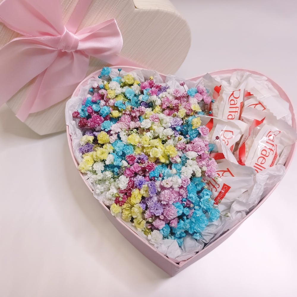 Подарочный набор «Сердечко из гипсофилы и раффаэлло»