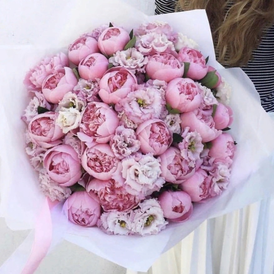 Букет «Сердце» из эустом и пионов