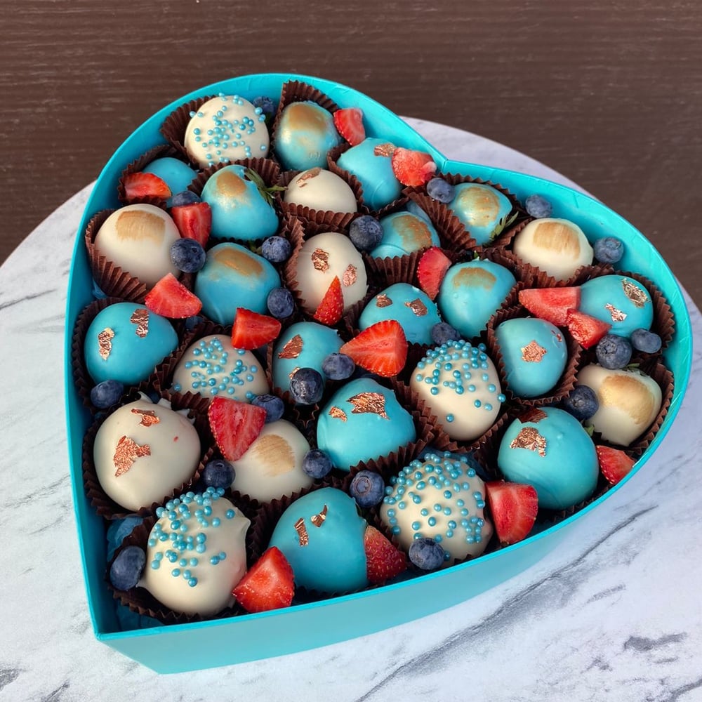 Нежнейшая композиция Сердце из клубники в бельгийском белом шоколаде в сочетании с голубикой станет отличным подарком для любимой 🥰Дарите любимым эмоции🌺😻Размер коробочки Сердце - 30 * 27* 12 с...