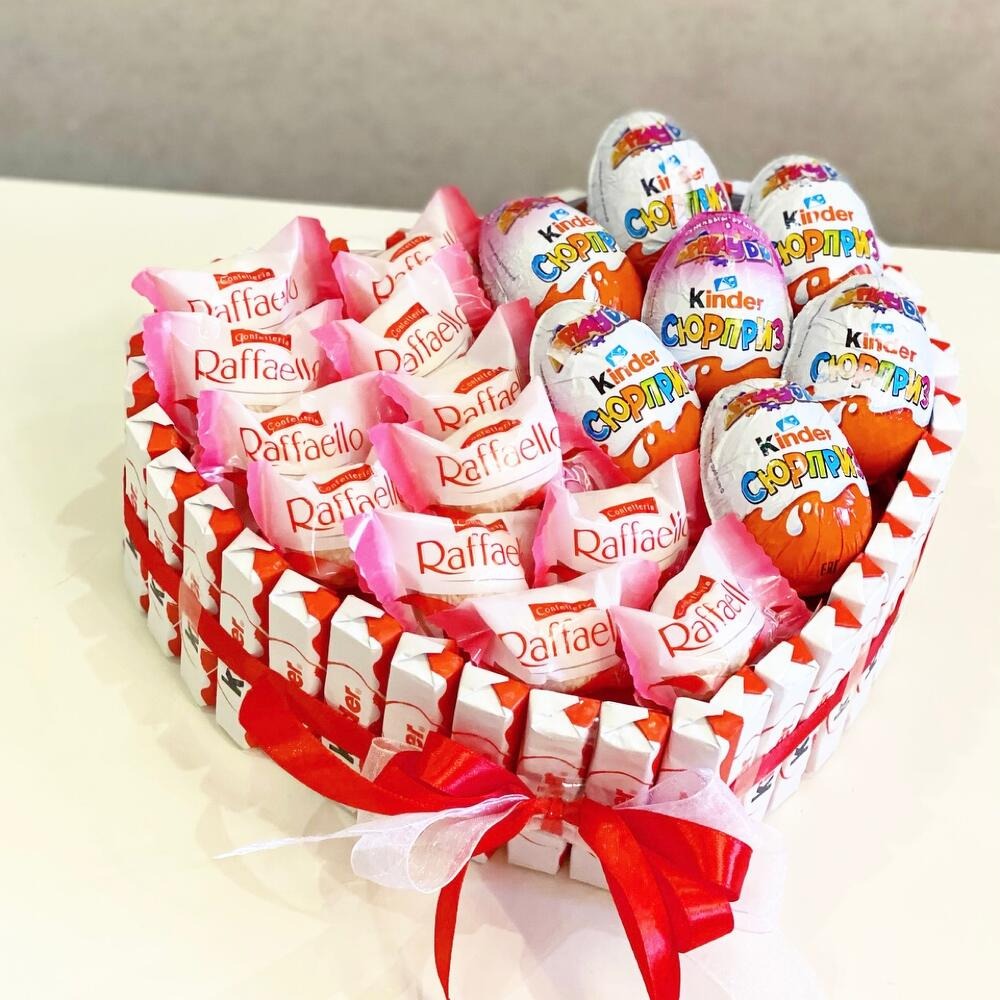 Состав Раффаэлло - 12 шт. Киндер сюрприз - 7 шт. Киндер шоколад - 36 шт.