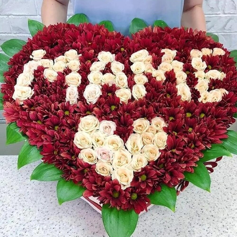 Композиция в форме сердца «Сердце Мамы» из роз и хризантем