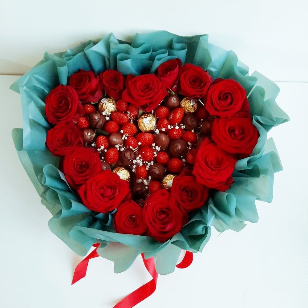 Розы Гипсофила Клубника Клубника в молочном шоколаде Конфеты fererro