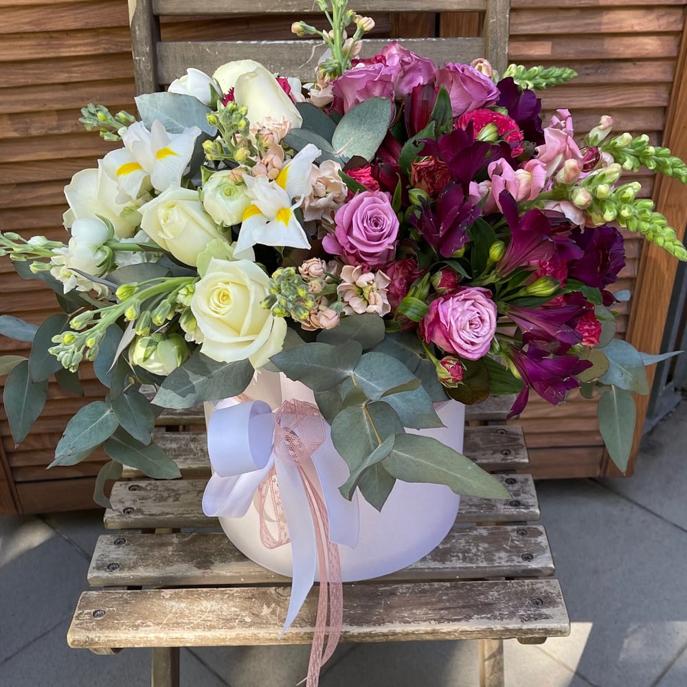 Коробка с цветами «Северное сияние» из роз и экзотических цветов