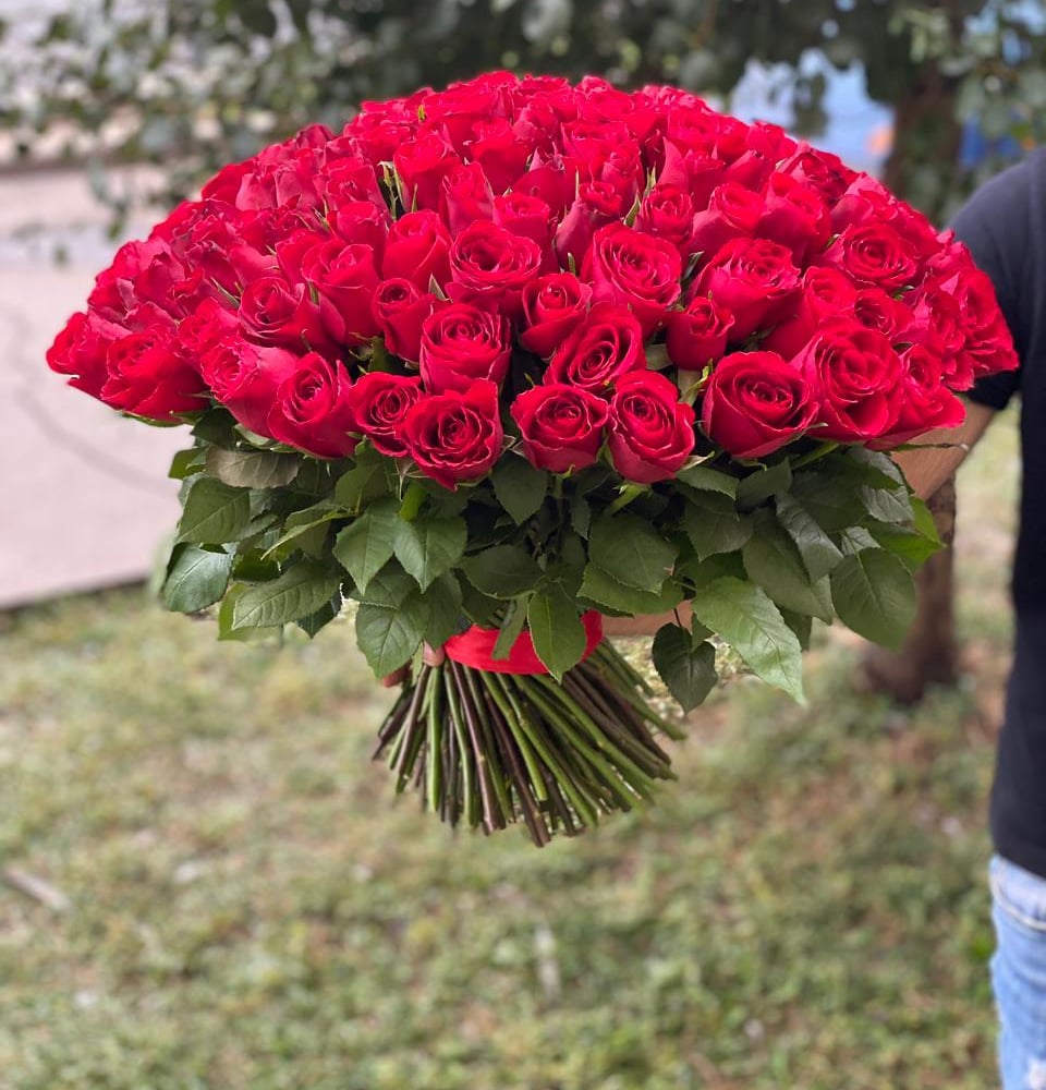 Алые розы в знак глубокой любви вашей второй половинки.