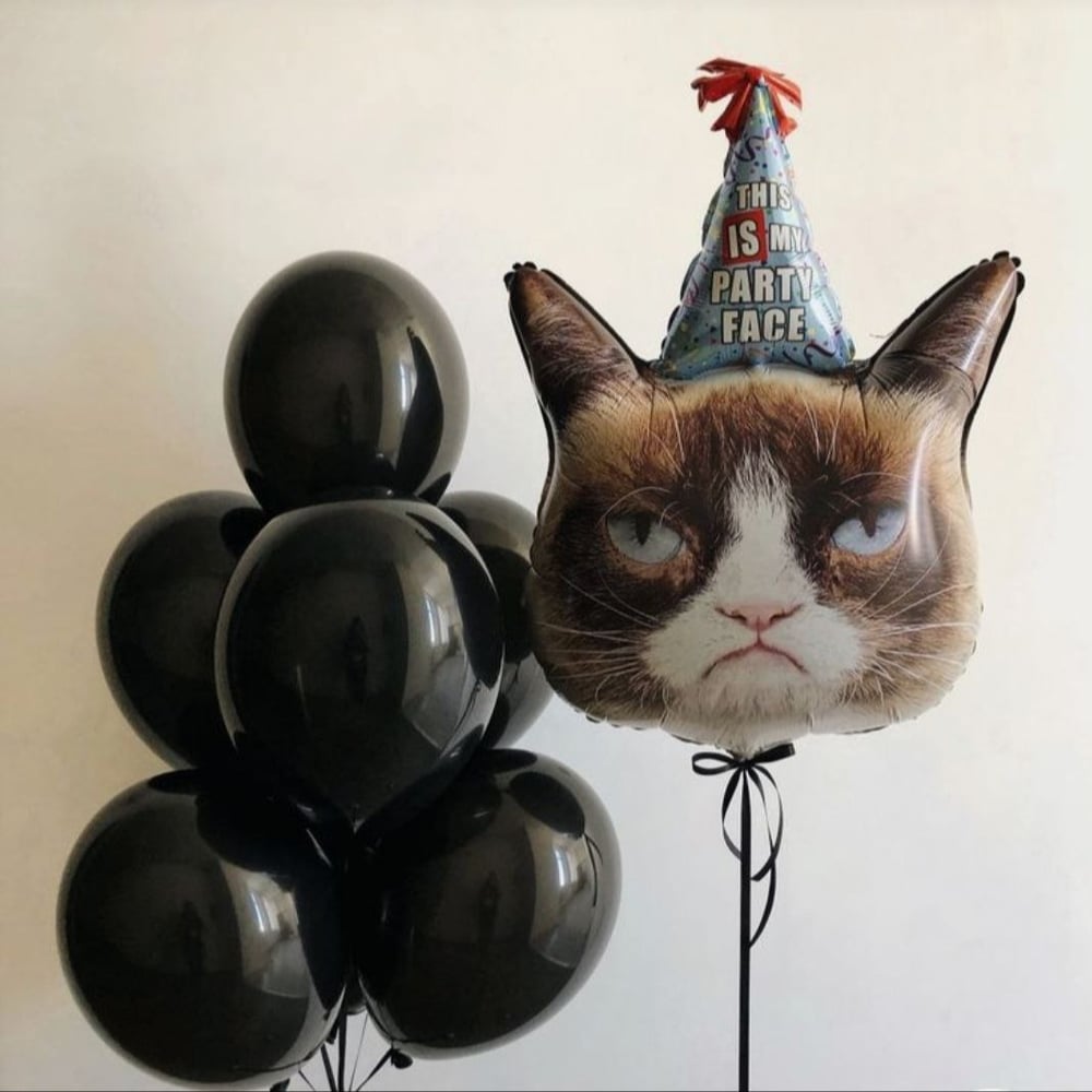 🎁 Идеальный подарок для твоего самого довольного друга - фольгированный шар кот с надписью "this is my party face"! 😎 Этот шар станет настоящей звездой любой вечеринки и поднимет настроение всем гостям. А чтобы создать по-настоящему праздничную атмосферу, мы добавляем к набору фонтан из 7 классических чёрных шаров (но если ты хочешь, мы можем заменить их на другой оттенок). 🎉 Такой набор - это не только красиво и весело, но и очень удобно. Ты можешь заказать его онлайн и получить готовый набор, который не требует дополнительной укладки и оформления. Не упусти возможность порадовать своего друга и создать незабываемую атмосферу на любой вечеринке! 🎈
