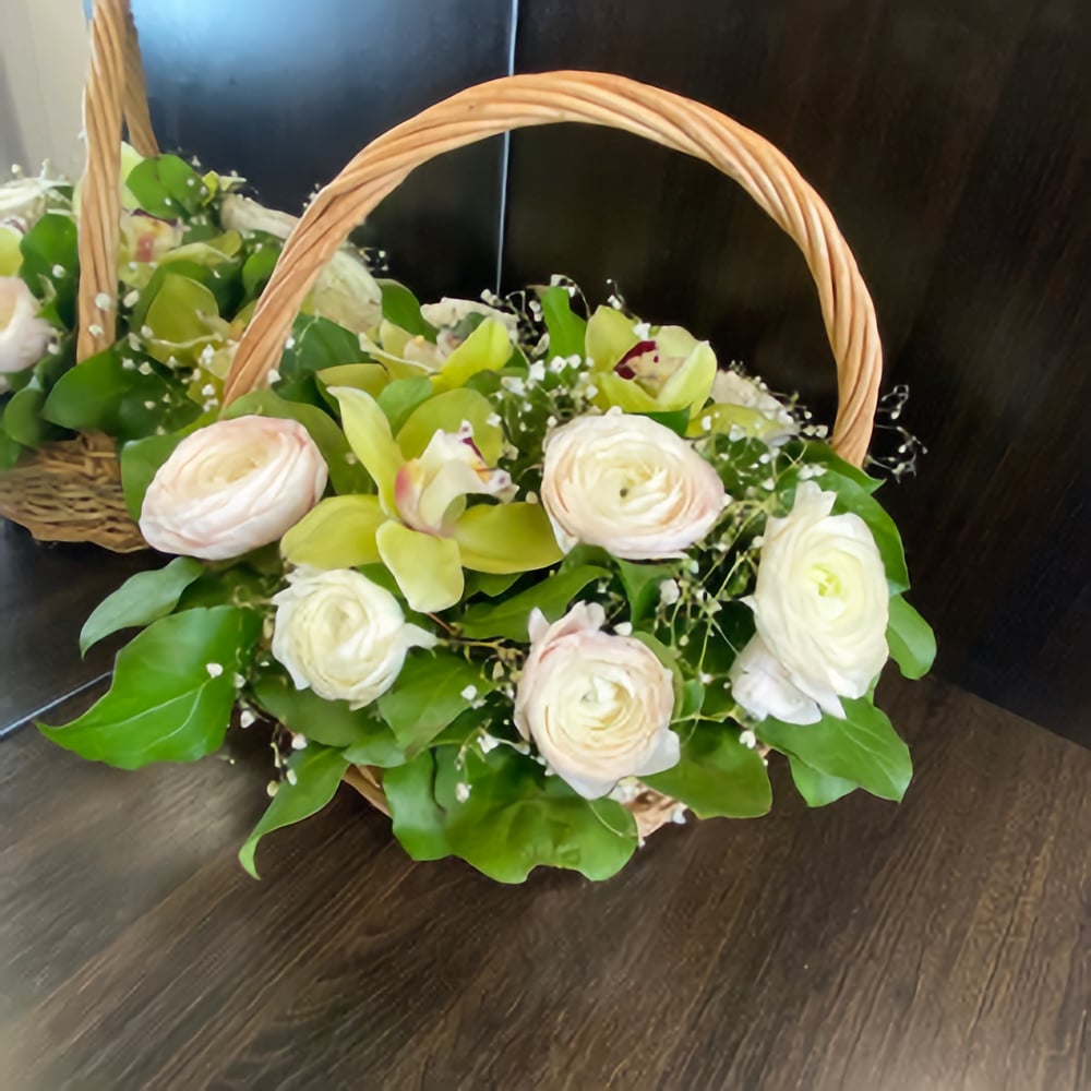 Корзина с цветами «Шарм» из экзотических цветов и орхидей