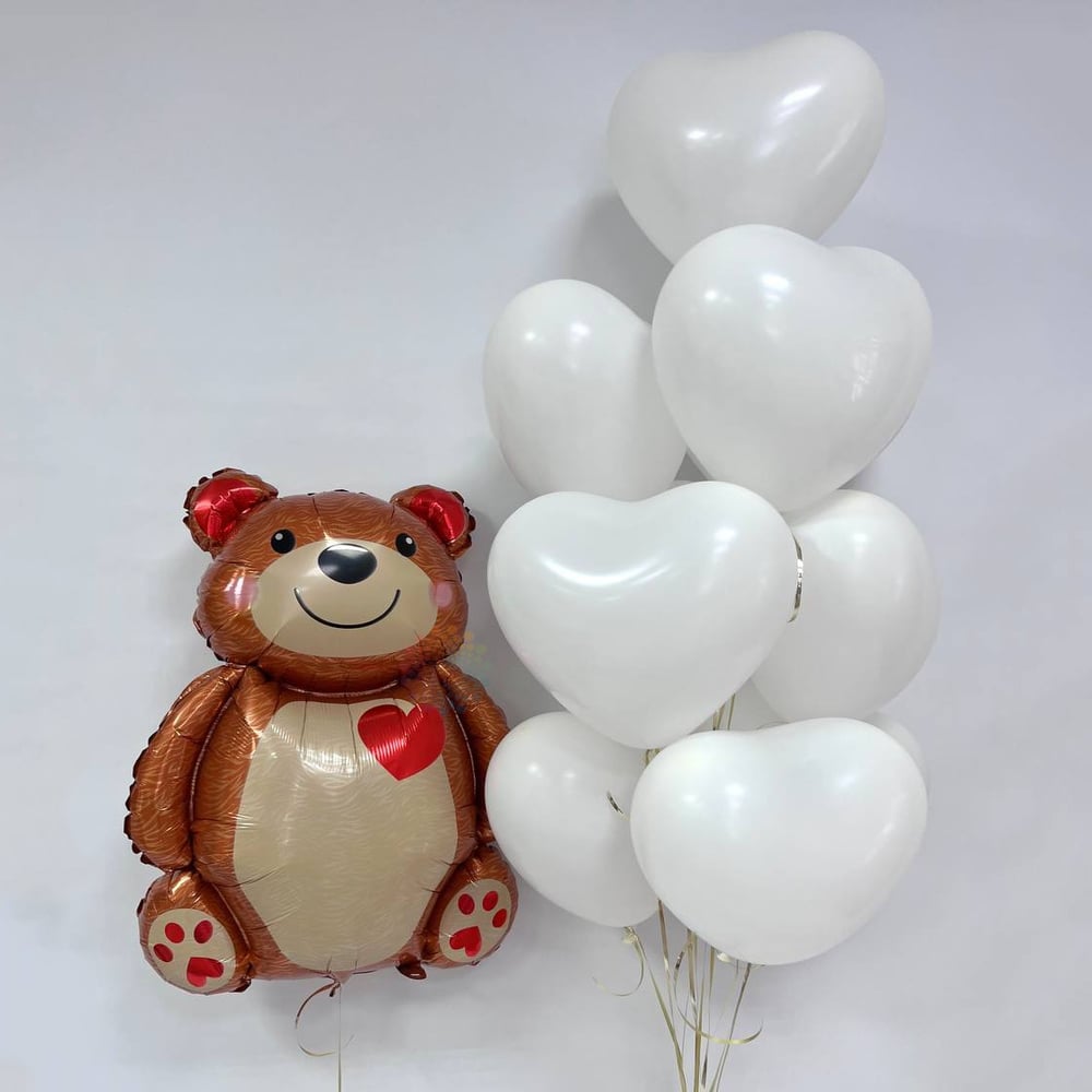 Шары на 14 февраля сердца белые и мишка