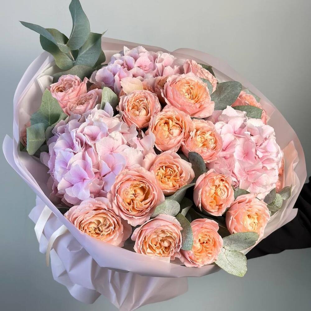 Большой букет гортензий и пионовидных роз !!! Букетик прекрасно подойдет как подарок для любого получателя и по любому поводу, будь то день рождения или 1 сентября, 8 марта, или День Матери. ...