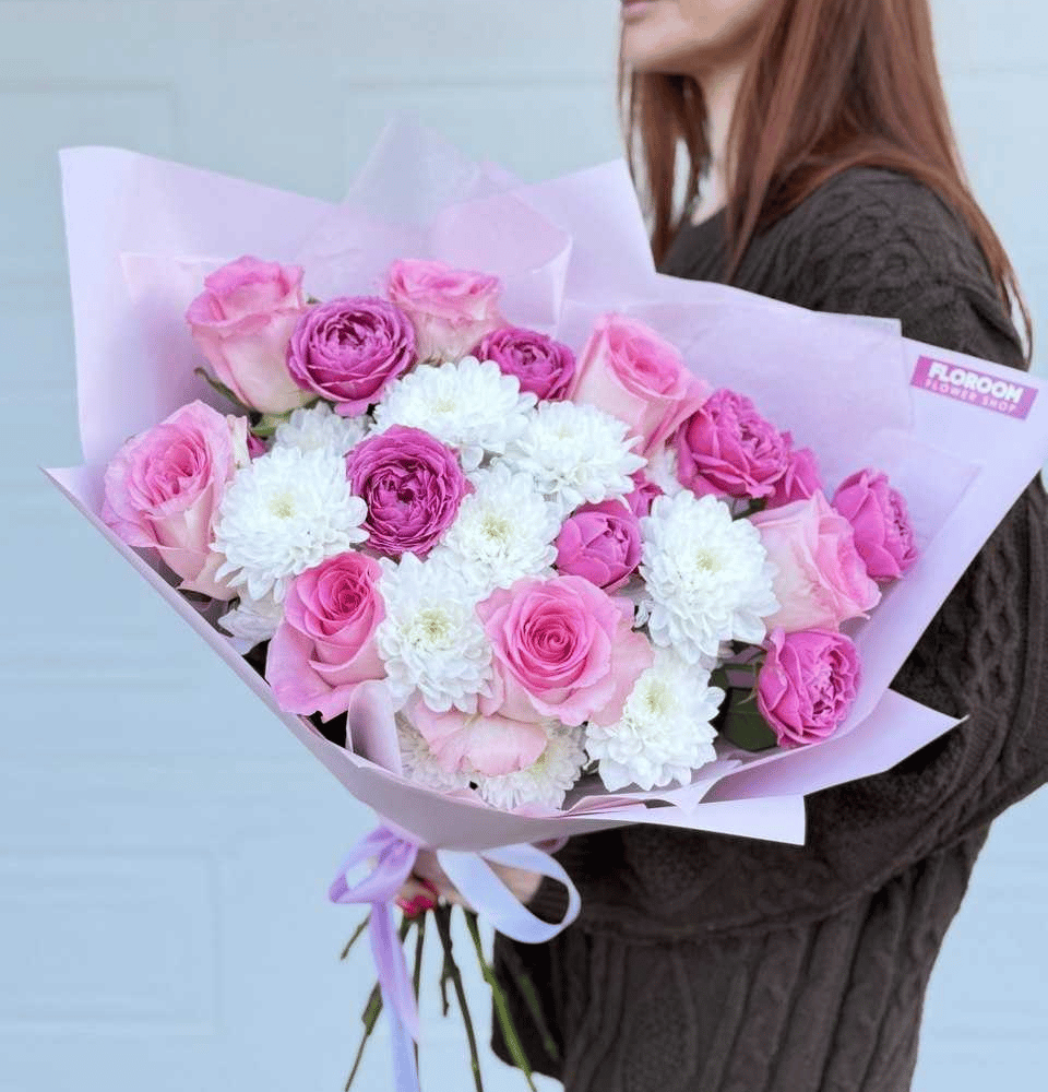 Шикарный букет для самой любимой из Пионовидных роз и хризантем
