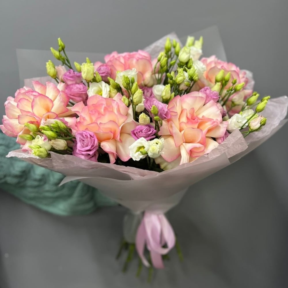 Шикарный букет роз и эустомы