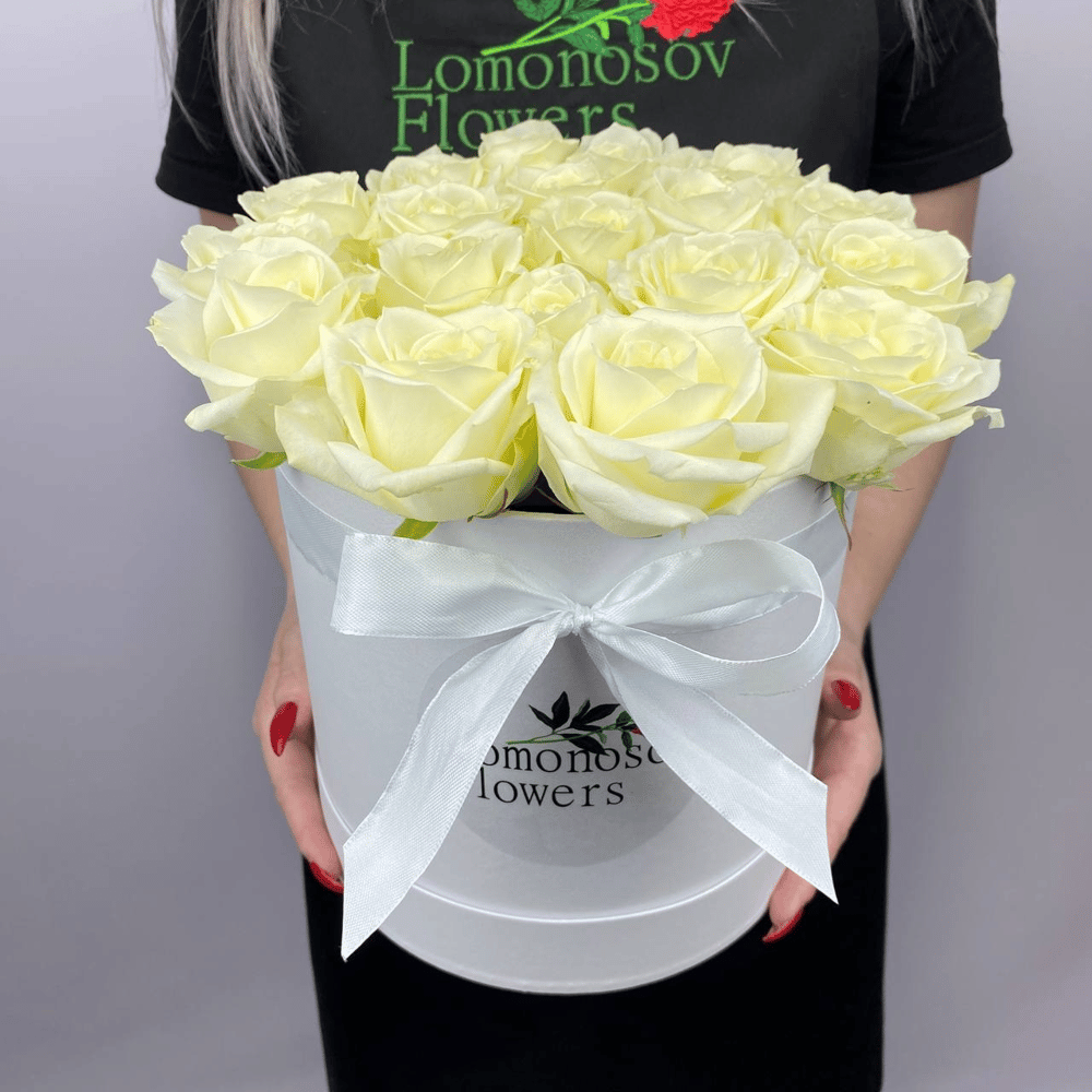 Шляпная коробка из 19 белых роз