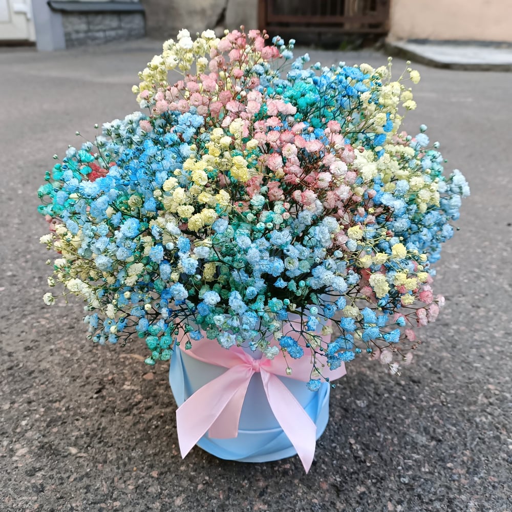 Шляпная коробка с радужной гипсофилой
