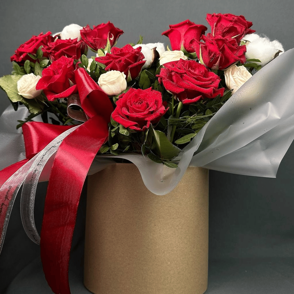 Шляпная коробка с розой "экслорер" и с кустовой розой