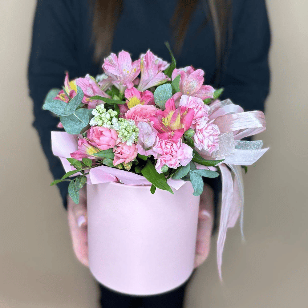 Шляпная коробка Шопат любви из альстромерий
