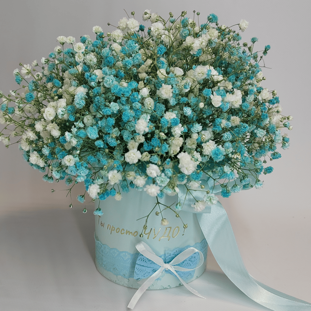 Шляпная коробочка с гипсофилой как нежное облачко подарит приятные эмоции. Букет на любой случай день рождения, 8 марта любимой девушке жене сестре маме подруге тренеру коллеге
