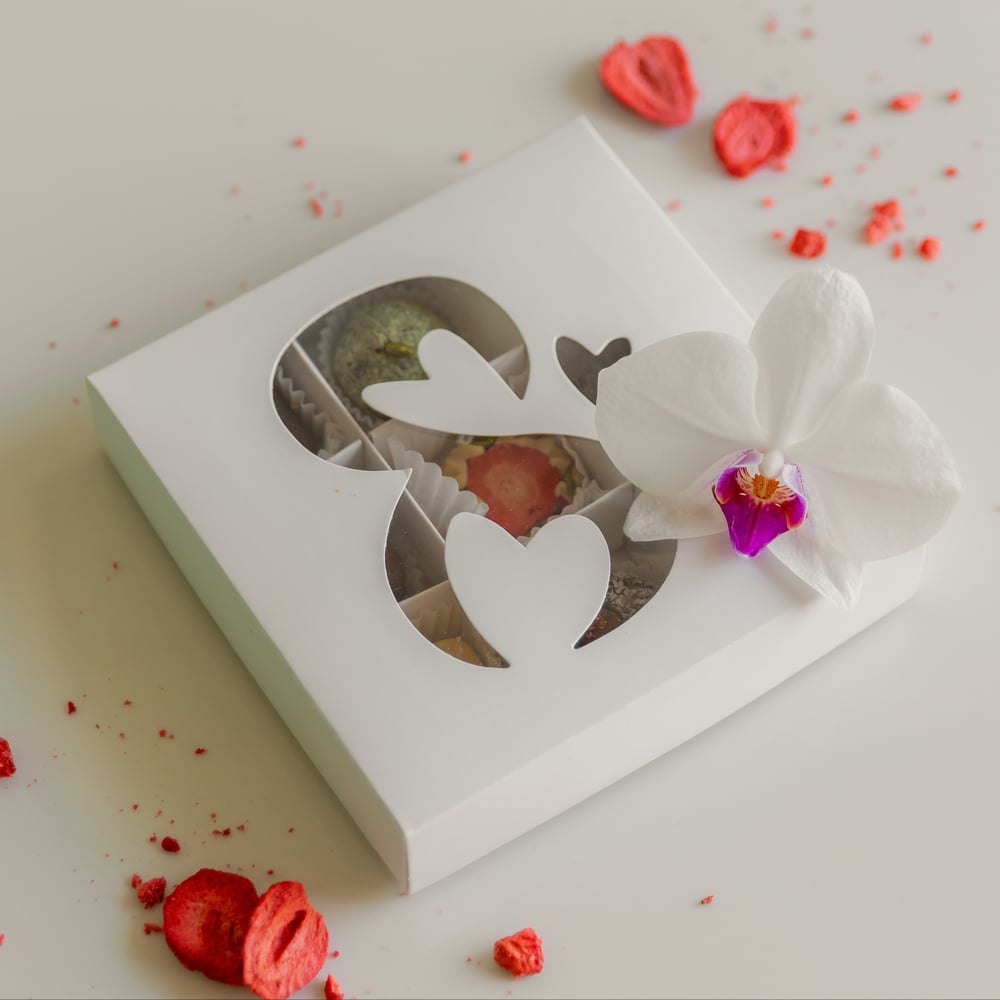 Божественные конфеты из белого веганского шоколада с хрустящими сублимированными ягодами и орехами! Состав: Какао масло, кешью паста, кокосовое молоко сухое, сироп топинамбура, грецкий орех, минда...