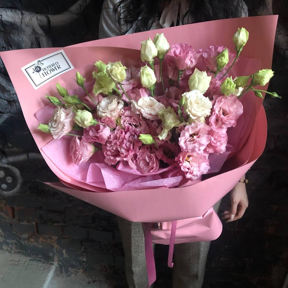 Букет из 17 розовых эустом (лизиантусов) в стильной упаковке