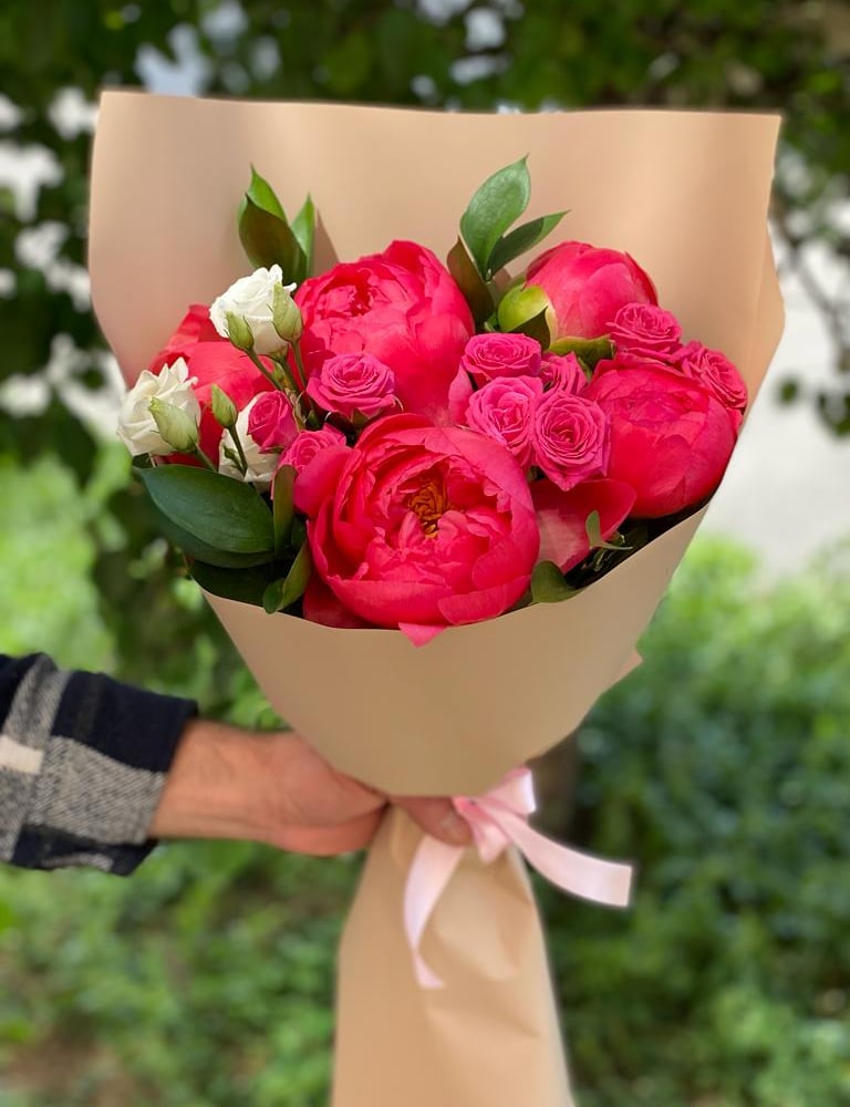 Букет «Шропшир» из пионов и роз