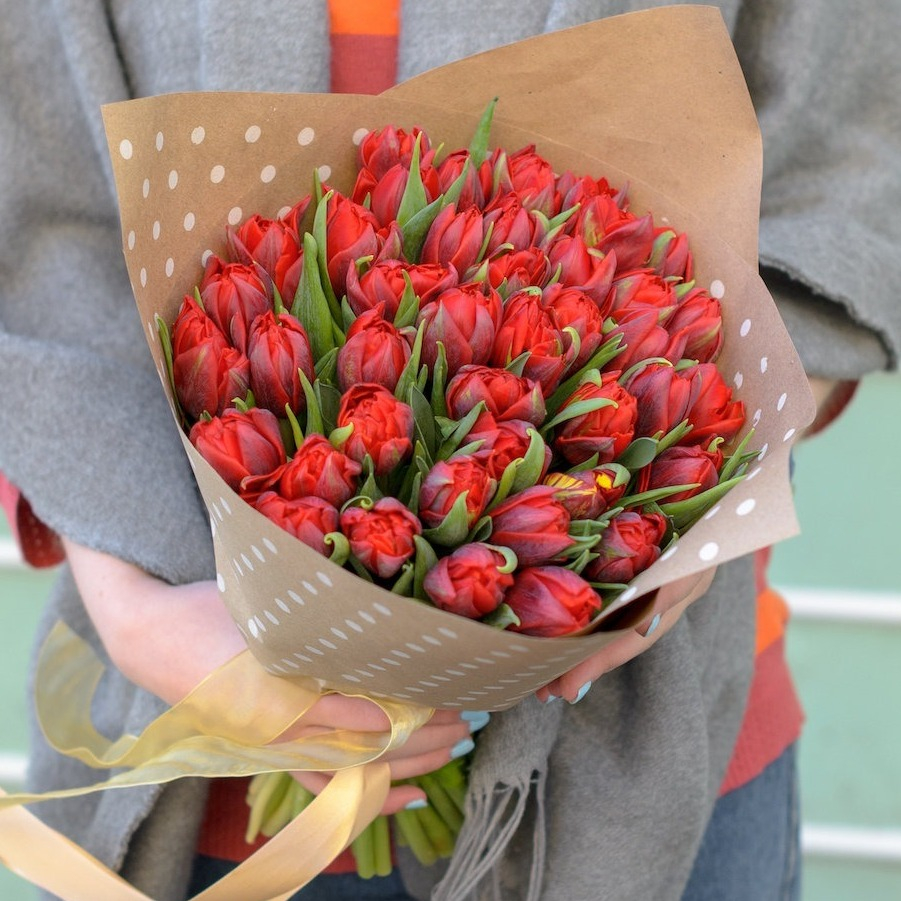 Красные тюльпаны — это сильная, пламенная любовь, страсть, восторг! Они могут заменить собой первое признание в любви.