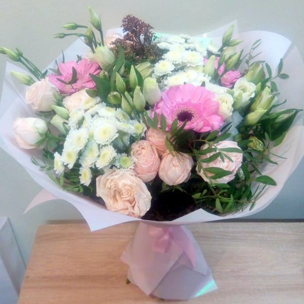 Вдохните волнующий аромат новой весны вместе с этим великолепным букетом в нежных розовых оттенках. Кружевные альстромерии, свежие герберы, эустомы сплелись в очаровательной симфонии для наслаждения самых любимых получателей.