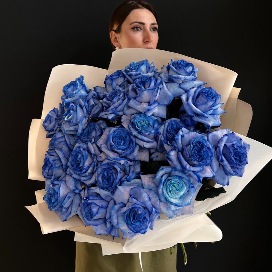 Красивые розы, окрашенные в синий цвет, интересны переходами оттенков, можно бесконечно любоваться. Рекомендации по уходу за букетами: 🌹Цветы можно ставить только в чистую вазу. 🌹Наполните вазу прохладной чистой водой, так чтобы место связки букета было выше уровня воды на 2-3 сантиметра. 🌹Подрежьте острым ножом стебли цветов наискосок и сразу поставьте их в воду. 🌹Каждые два дня меняйте воду в вазе. При каждой смене воды обновляйте косой срез стеблей. 🌹Цветы любят прохладу. Держите цветы подальше от нагревательных приборов, прямых солнечных лучей, и сквозняков. Также рекомендуем не ставить рядом с фруктами.