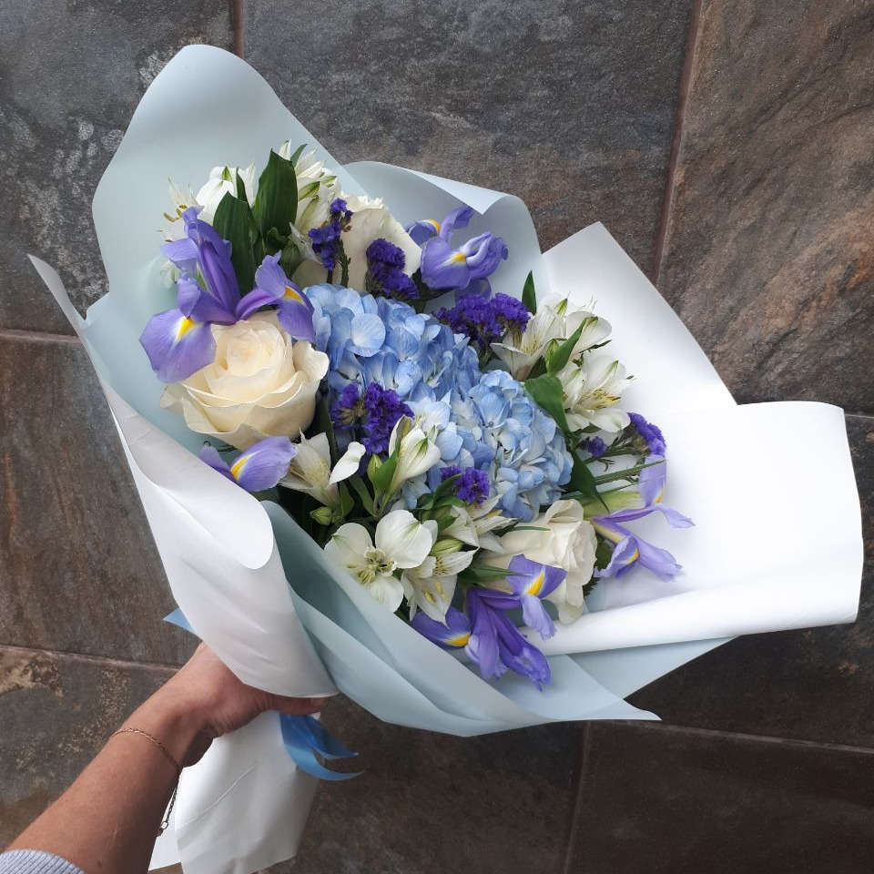 Букет «Сияние сапфира» из ирисов и альстромерий